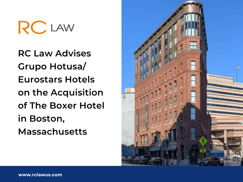 RC Law acted as legal counsel to Grupo Hotusa, through its Eurostars Hotel Company brand, in connection with the acquisition of The Boxer Hotel, an 80-key, four-star property located in Boston’s historic West End neighborhood, in a multimillion-dollar transaction.